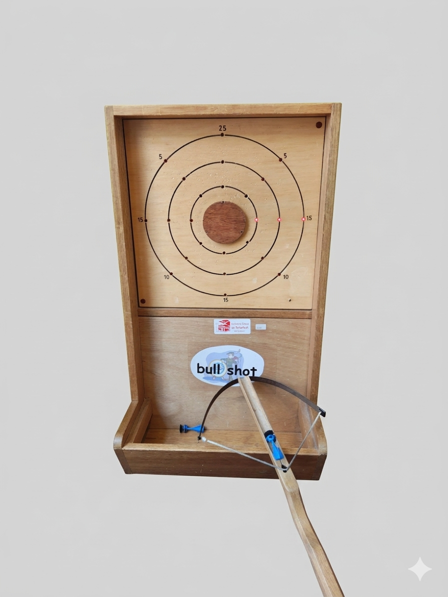 Het raken van de bull met vijf pijltjes (voorzien van zuignapjes) die worden afgevuurd met een kruisboog.