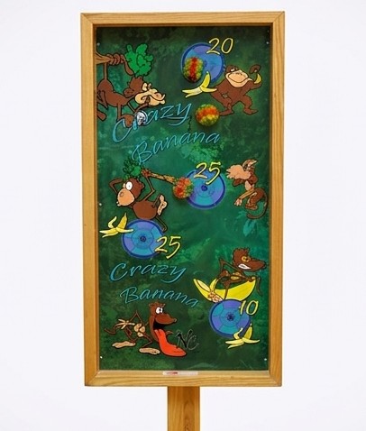 Je gooit 5 kleefballetjes op de cirkels van het speelbord.